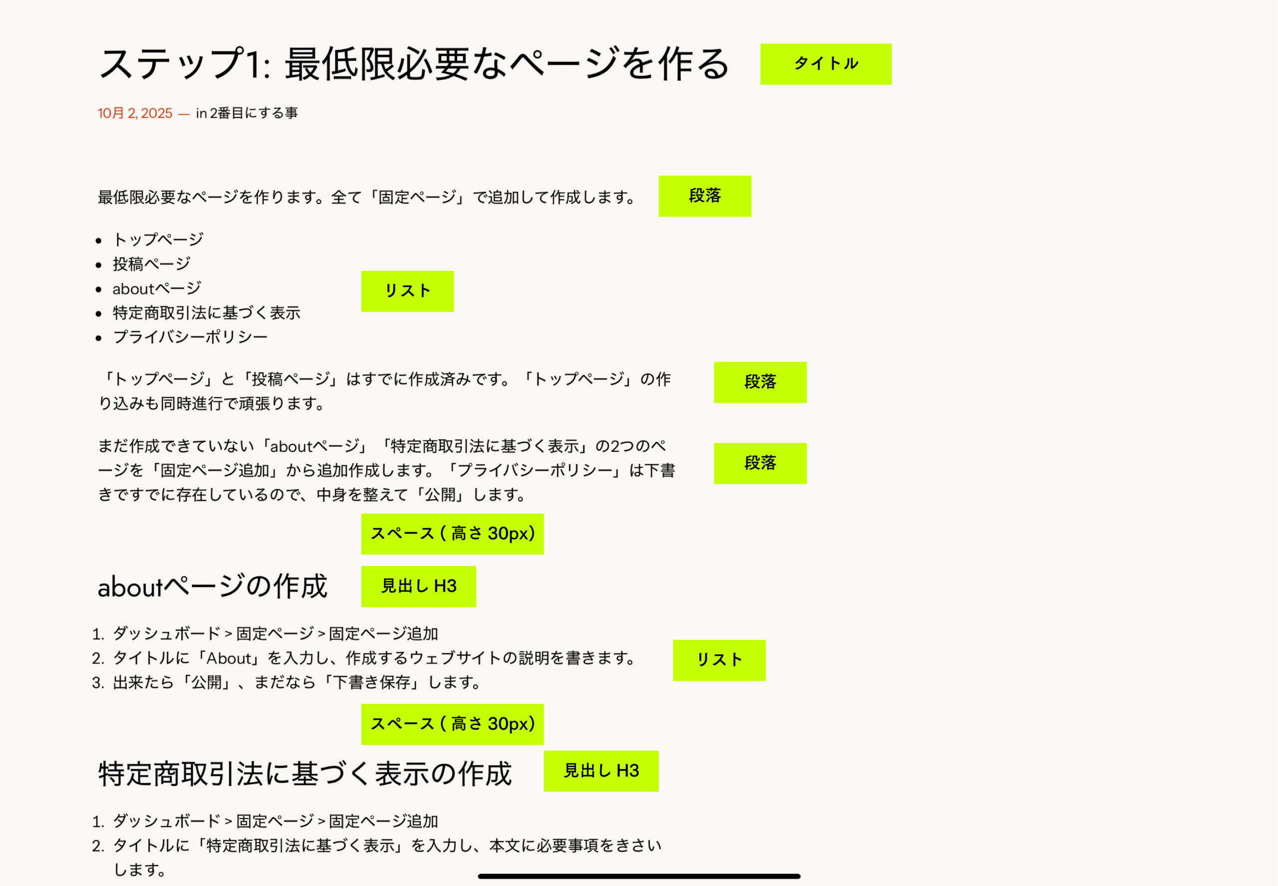 ステップ1の記事は、タブレットで見ると下の写真のように表示されます。