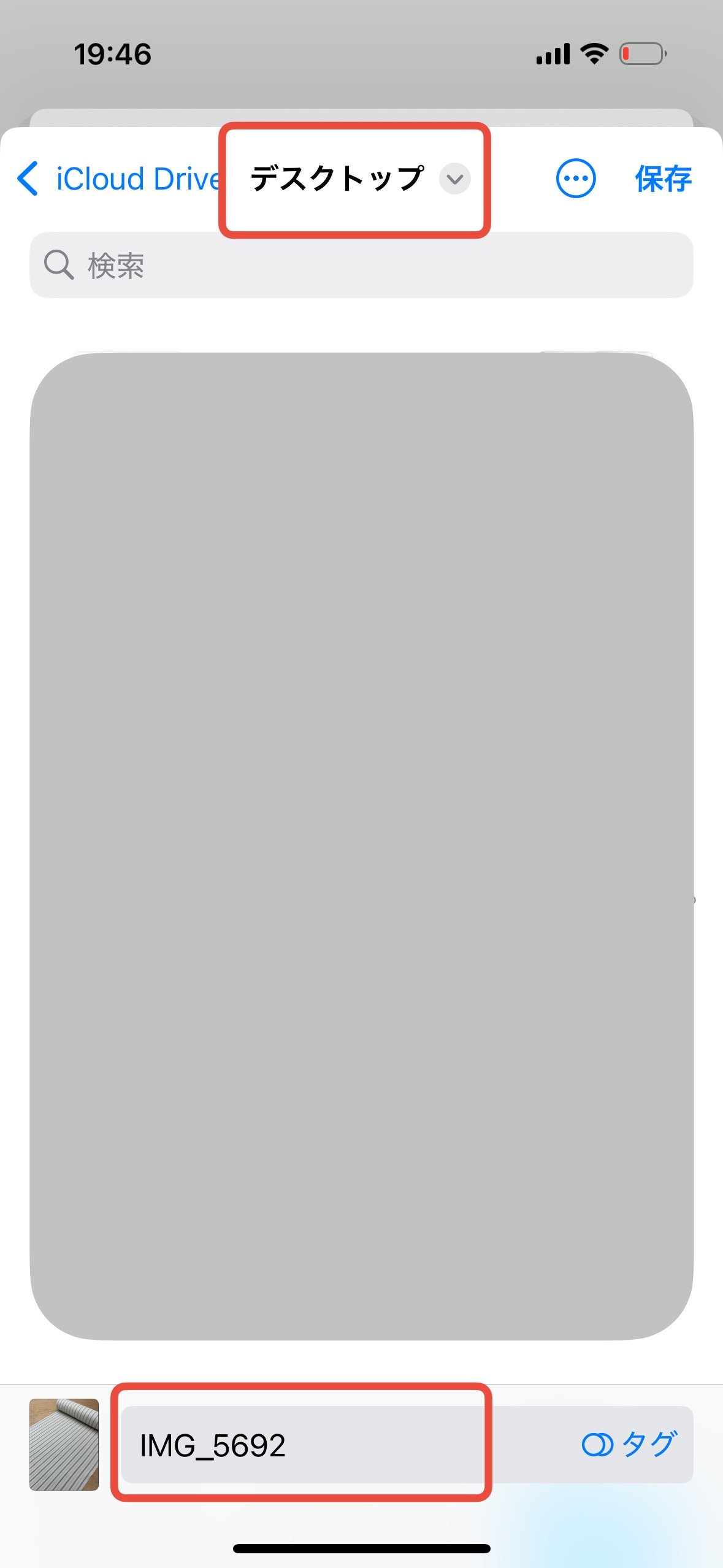 左下の□↑マークをタップし、ファイルに保存をタップします。
